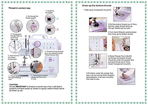 Strumento per cucire multifunzione:questa macchina per cucire domestica è dotata di luce da cucito integrata a 12 punti a 2 velocità. Può cucitura, orlo, asola, auto-avvolgimento o ecc filo doppio e doppia velocità aiuta ordinato, creare dritto e stretto punto. Braccio libero per cucire polsini o gambe dei pantaloni, soddisfare la tua immaginazione con la macchina da cucire overlock.