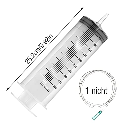 Jooheli 550ml Siringa Grande,Siringa con 1m Tubo in Plastica per l'erogazione di Colla,Laboratori Scientifici,Irrigazione,Riutilizzabili
