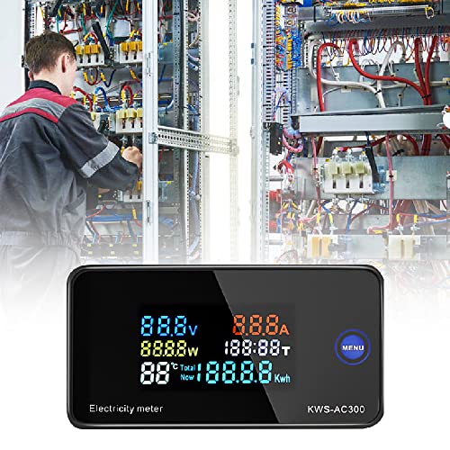 Jooheli Amperometro Voltometro, Digitale Multifunzione Misuratore di Tensione Corrente Elettrica Potenza, AC 100A 50-300V, Wattmetro Tester LCD Volt Ampere Meter con display della temperatura