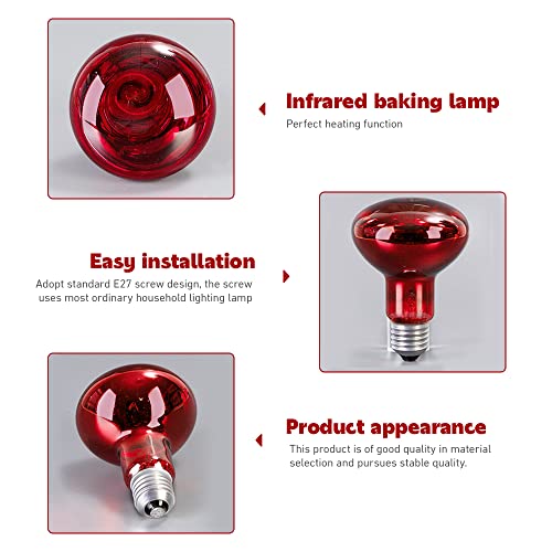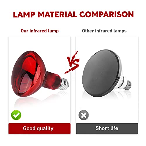 ✅ 【Durevole】 La lampada infrarossi riscaldante da 100 W è realizzata in vetro resistente al calore di alta qualità, può resistere alle alte temperature, migliore dissipazione del calore, durevole, anticorrosione, uso a lungo termine in ambienti umidi.