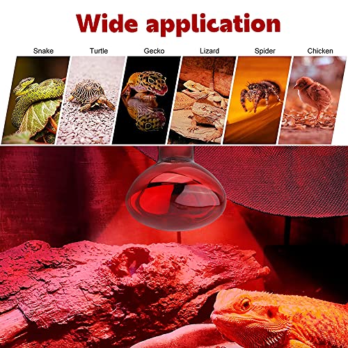 【Ampia applicazione】 La nostra lampada infrarossi riscaldante è adatta a una varietà di rettili e anfibi, inclusi draghi barbuti, gechi, serpenti, tartarughe, tartarughe, iguane, lucertole, camaleonti, rane, rospi, ecc.