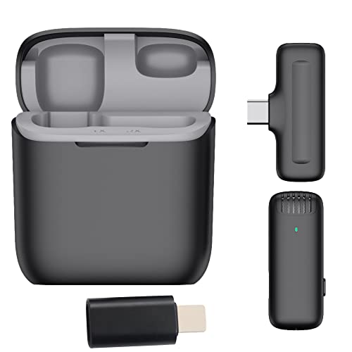 Jooheli Microfono Lavalier Wireless, Microfono Wireless Professionale per Type-C Androide, 2,4GHz Mini Microfoni con Custodia di Ricarica, Plug & Play, Riduzione del Rumore, per TikTok, Youtube, Vlog