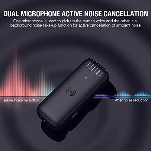 【20 metri di connessione senza barriere e riduzione del rumore】 La nuova tecnologia wireless 2.4G contribuisce sia alla trasmissione del segnale stabile che alla lunga distanza di trasmissione. Chip di riduzione del rumore professionale integrato, Microfono lavalier wireless in grado di riconoscere voci autentiche e registrare chiaramente anche in ambienti rumorosi. Sincronizza in tempo reale la musica di sottofondo del telefono e la voce umana, così puoi registrare video più liberamente.