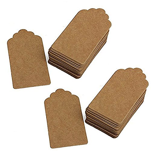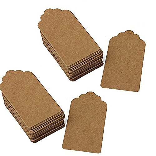 Jooks confezione 100 rustico 95 MMX45 MM smerlato Kraft carta targhette regalo etichette Kraft marrone vuoto tag bomboniere fai da te bagagli tag prezzo etichetta