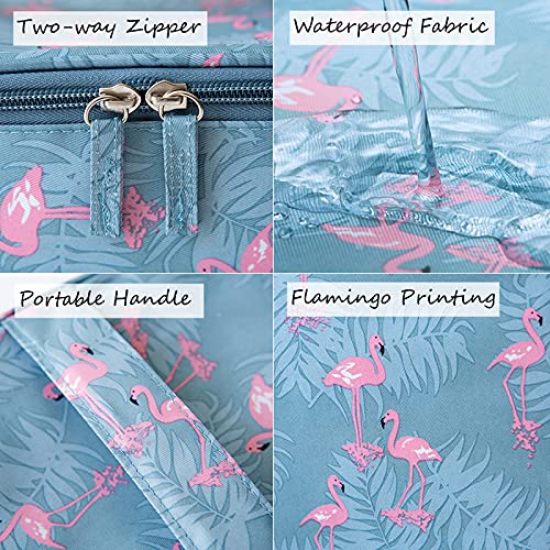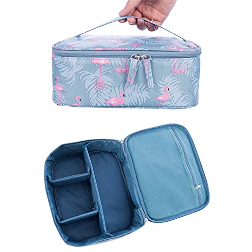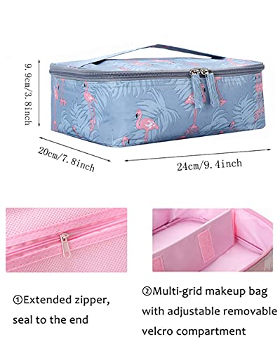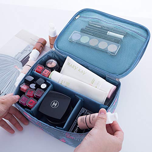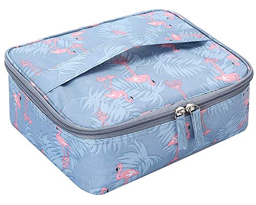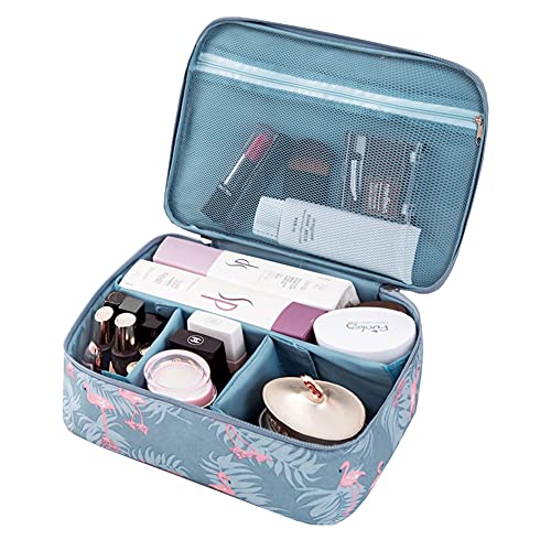 JooNeng, piccola borsa da viaggio per trucchi, con scomparti, organizer cosmetici, trousse per donne e ragazze Blue Flamingo