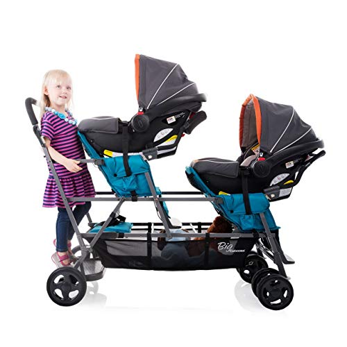 Sedile posteriore e piattaforma stand up possono ospitare un bambino di 2,5 anni e fino a 20 kg Ideale per gemelli, gemelli + neonati, triplette o tre neonati, max. Peso 56 kg