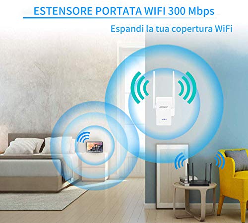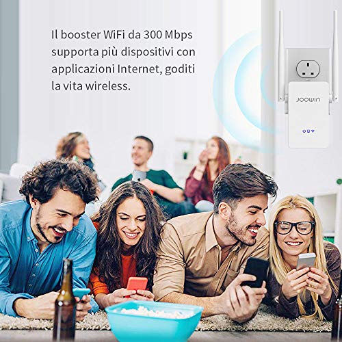 JOOWIN Ripetitore WiFi Wireless 300Mbps WiFi Extender Wireless velocità Single Band 2.4GHz Amplificatore Segnale Wi-Fi Porta LAN, 2 Antenne, Pulsante WPS, modalità Ripetitore/Router/AP