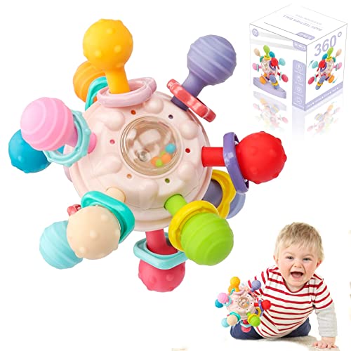 【La migliore palla sensoriale per bambini】: Progettato per i bambini 0+ 3 6 9 12 mesi. Con un peso di circa 140 g e dimensioni moderate di 9,7 x 9,7 x 6,5 cm, la palla sonaglio in silicone è leggera e facile da afferrare, anche se cade sul viso del bambino, non farà male alla sua pelle sensibile. Regali per neonati ideali per lo sviluppo precoce e l'attività.