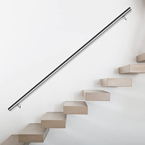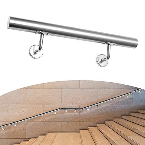 Jopassy Corrimano in acciaio inossidabile, maniglia della scala, corrimano lungo 160cm, 42mm, utilizzato per scale interne ed esterne, incl. con supporto da parete e tappi terminali