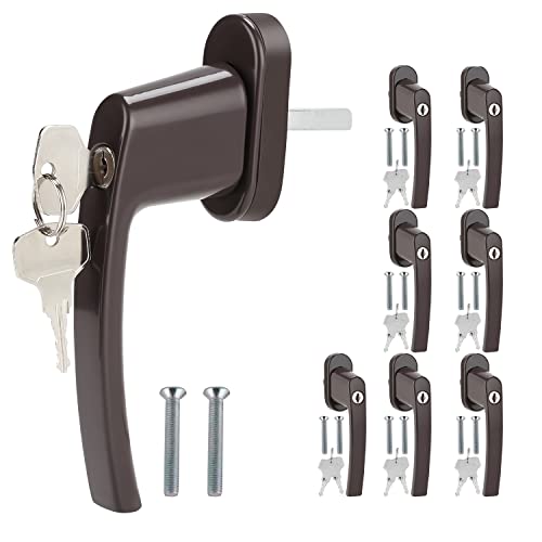 Jopassy Maniglia per finestra con serratura, in alluminio, 8 pezzi, lunghezza perno 35 mm, serratura per finestra di sicurezza per bambini, montaggio facile, serratura per finestra di colore marrone