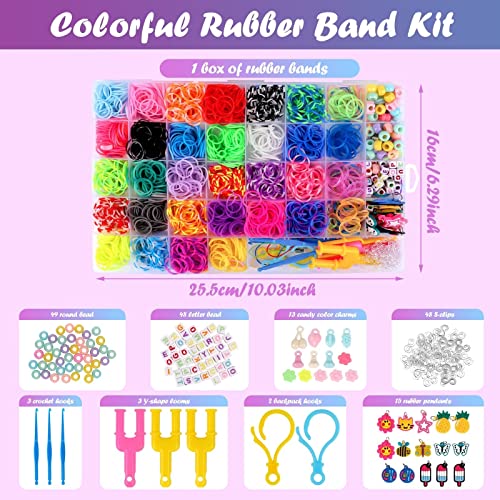 Rubber Band Set: Questo set creativo fatto a mano di elastici è dotato di circa 3 clip per fionda, 2 ganci, 10 decorazioni dei cartoni animati, 48 fibbie a forma di s, 3 tipi di perline e grandi accessori fai da te. Può essere utilizzato per bracciali d'arte, bracciali di amicizia e più artigianato.