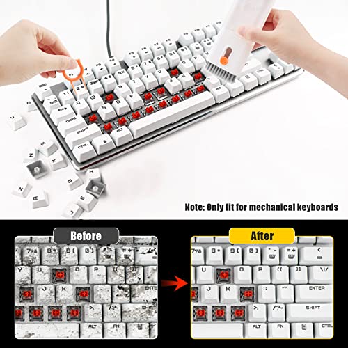Il kit per la pulizia del computer con estrattore per tasti e spazzola grande può aiutare a pulire la tastiera (Nota: la fibbia del tappo del tasto si adatta solo alle tastiere meccaniche). La spazzola ad alta densità ha setole dense e moderatamente morbide ed è ottima per pulire la polvere in varie tastiere e fessure del monitor. Il panno per schermi può essere utilizzato per pulire il telefono, il computer, il tablet e l'obiettivo della fotocamera.