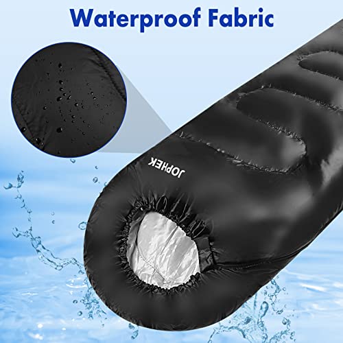 JOPHEK Sacco A Pelo, 1,3 kg Sacco A Pelo da Campeggio Confezione Piccola - Funzione 2 in 1 Sacchi A Pelo A Coperta, 220 x 80 cm, Adatto A 5°C -25°C (Nero)