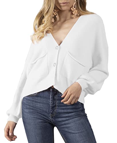 JOPHY & CO. Cardigan Corto Donna Tipo Maglia con Maniche Lunghe, Tasche e Bottoni (cod. 57058) (L, Bianco)