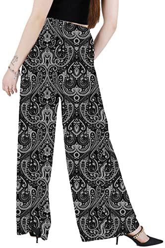 JOPHY & CO. Pantalone a Gamba Larga Donna 100% Viscosa (cod. 6390) (XL, Nero Paisley)
