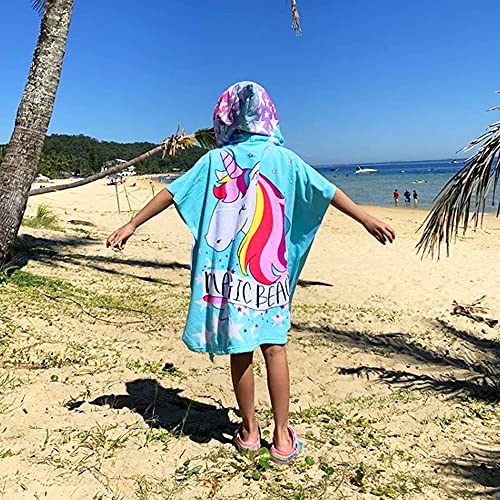 JORAKI Poncho da Bagno per Bambini, Asciugamano da Spiaggia per Bambini Teli Mare Accappatoio con Cappuccio per Ragazze Ragazzi Bambini Asciugamano 6-14 Anni, Modello Unicorno