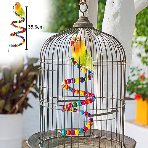 ❤【Design Unico】Questo giochi pappagalli con vari elementi. Il materiale di legno è sicuro per gli uccelli. La campana di metallo emette un suono chiaro quando l'uccello vola e arrampica. La superficie ruvida del posatoio consente ai pappagalli di affilare le loro unghie.