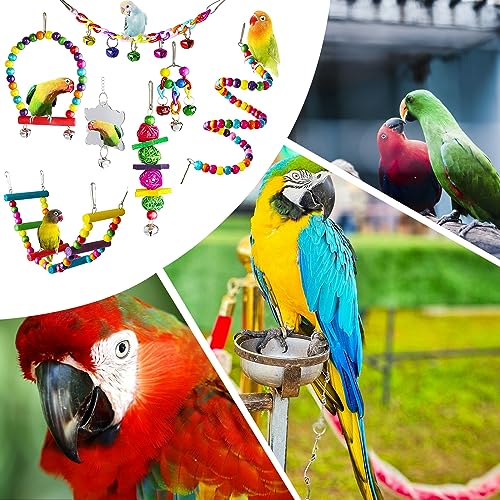 ❤【Divertirsi e Allenarsi】I giocattoli per pappagalli possono essere montati sui gabbie per l'alimentazione. I giocattoli colorati per pappagalli e le campanelle attirano facilmente gli uccelli, permettendo loro di allenare i loro muscoli attraverso l'oscillazione, il gioco e l'arrampicata, divertendosi e mantenendo la loro salute fisica e mentale.