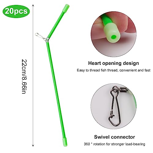 Jortmrd 20 Pezzi Anti Tangle da Pesca Bracci,Anti-Groviglio Connettore Bilancia in Plastica 22CM,Verde Anti Boom con Snap,Accessori per Connettori da Pesca per Pesca All'Aperto