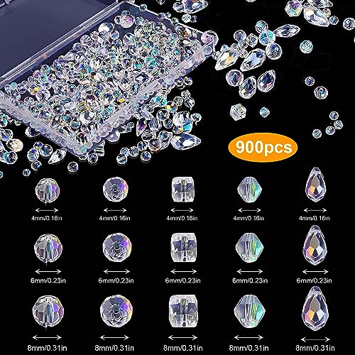 Jortmrd 900 Pezzi Kit Perline Vetro, Perline Cristallo Sfaccettato, Perline per Braccialetti con Scatola Portaoggetti per Braccialetti Collane Orecchini Creazione di Gioielli Fai da Te(4mm, 6mm, 8mm)