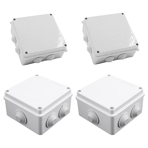 Jortmrd 4 Pezzi Scatola Derivazione Esterna IP65 Impermeabili,Scatola Elettrica Stagna in ABS,Cassetta Derivazione Esterna da Parete per Cavi Interni ed Esterni(85x85x50mm+100x100x70mm,Bianco)