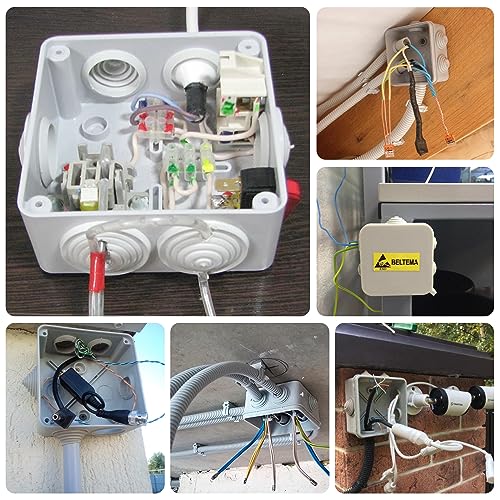 【Decorazione perfetta】 Il coperchio della scatola stagna elettrica da esterno è dotato di 7 aperture bianche da 25 mm e scatole di giunzione impermeabili con dimensioni di 85x85x50 mm e 100x100x70 mm, perfette per soluzioni di cablaggio esterno. Inoltre, ha un design esteticamente gradevole.