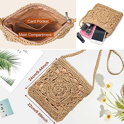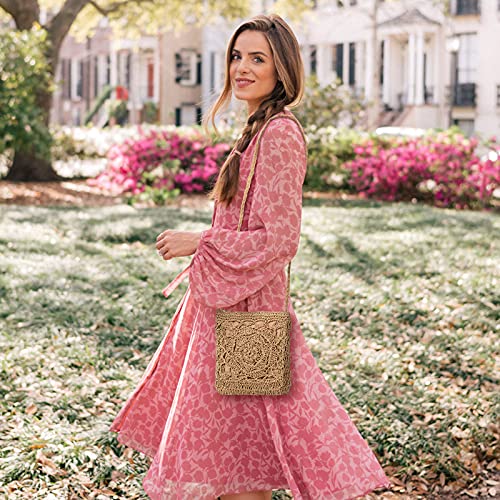 JOSEKO Borsa di Paglia, Donna Borsa a Tracolla in Paglia per il Viaggio in Spiaggia e Uso Quotidiano(Marron)