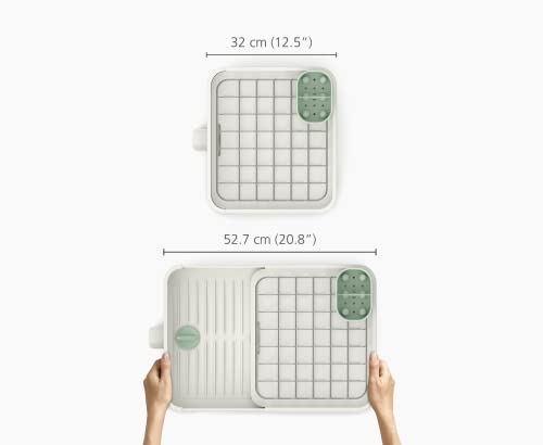 Joseph Joseph Extend - Scolapiatti da appoggio per lavello Estendibile con portaposate rimovibile, beccuccio di drenaggio girevole - Plastica, Bianco/Verde