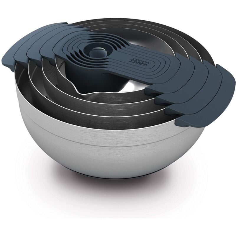 Descrizione Il design innovativo di questo set per la preparazione dei cibi Nest™ Steel consente di impilare ordinatamente i singoli elementi, occupando così il minimo ingombro. Nest™ Steel include due formati di terrine in acciaio inox, entrambe con base anti-scivolo, un colino a maglia fine in acciaio inox, uno scolapasta grande in acciaio inox e un set di cinque misurini di dimensioni variabili da 1 cucchiaino (5 ml) fino a 1 tazza (250 ml). In linea con le elevate specifiche della gamma, le terrine, il colino e lo scolapasta sono tutti realizzati in acciaio inox 18/8, garantendo una durata eccezionale. Avviso di sicurezza Bottiglia: lavare a mano solo dopo ogni utilizzo con una miscela di acqua calda e bicarbonato di sodio o detersivo per piatti. Attenzione: non adatto a lavastoviglie, frigorifero/congelatore, microonde o forno. Non utilizzare per trasportare o conservare cubetti di ghiaccio in quanto ciò potrebbe danneggiare il rivestimento interno. Non adatto per bevande