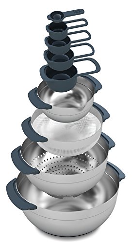 Joseph Joseph Nest 9 Plus, set compatto per la preparazione degli alimenti da 9 pezzi con ciotole per mescolare, misurini, setaccio e colino, acciaio inossidabile