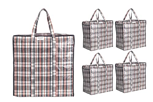 Borse di stoccaggio durevoli, realizzate in polipropilene intrecciato. Materiale robusto e antistrappo con cerniera. Per riporre biancheria da letto, piumoni e vestiti.