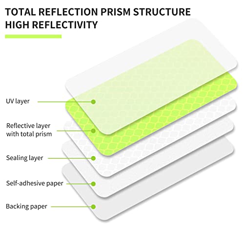 EINFACH ZU BEDIENEN: Der reflektoraufkleber kann auf fast jeder glatten Oberfläche angebracht werden. Hinweis: Bitte reinigen Sie die Oberfläche des Objekts vor dem Auftragen von Schmutz, Wasser und Fett. Wenn Sie ihn entfernen möchten, können Sie ihn leicht entfernen, indem Sie 30 Sekunden lang mit einem Haartrockner heiße Luft auf die Oberfläche blasen.