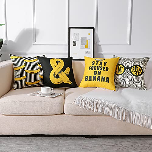 JOTOM Federa per cuscino con fiori e uccelli, motivo geometrico, per divano, casa, soggiorno, camera da letto, decorazione per interni, 45 x 45 cm, set di 4 pezzi (banana)
