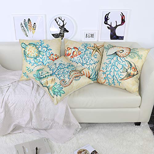 JOTOM Fodera per Cuscino Cotone e Lino Geometria Alberi Uccelli e Fiori Federa per Divano Famiglia Soggiorno Camera da Letto Decorazione, 45x45cm, Set di 4 Pezzi(Conchiglia)