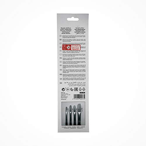 Jovi - Pennelli artistici calibrati a punta piatta, blister di 4 pezzi, peli naturali duri e manico in legno, misure 4, 6, 8 e 12 (8386)