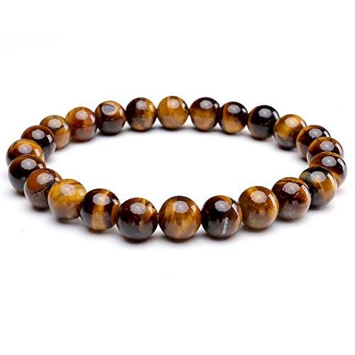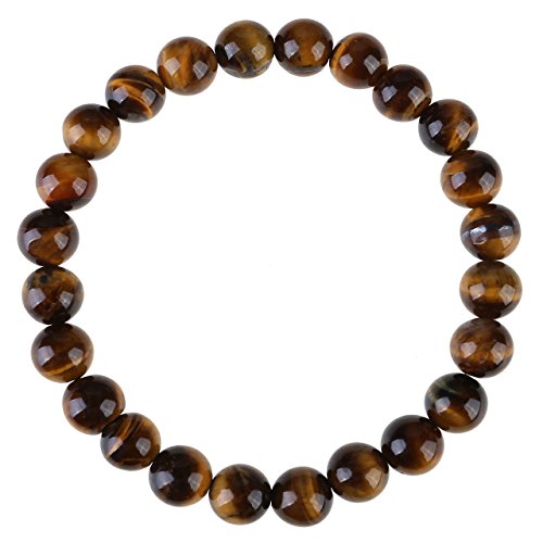 Jovivi - Bracciale in pietra occhio di tigre, 8 mm, con perle energetiche, pietre preziose, elastico, tibetano, buddista, unisex