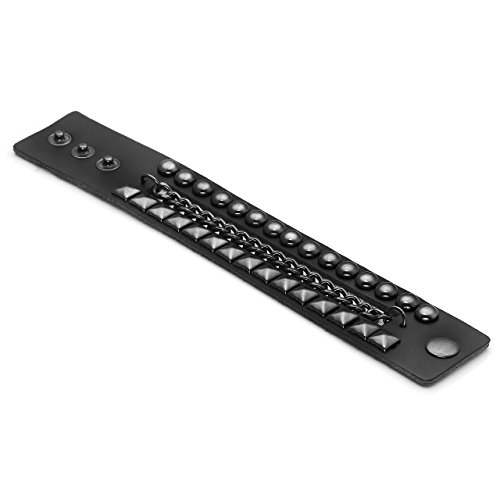Jovivi - Braccialetto rigido in vera pelle, a fascia larga, con borchie e chiusura con bottoni automatici, stile punk, colore: nero