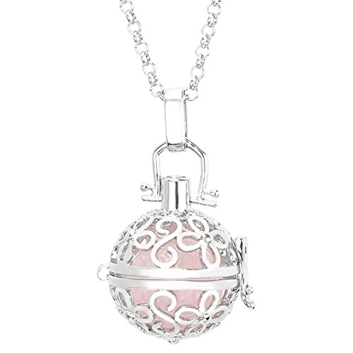JOVIVI ciondolo chiama-angeli, Hollow Locket, collana, ciondolo, catena a gabbia con sfere ø 16mm in quarzo rosa, sfere di pietra naturale
