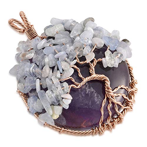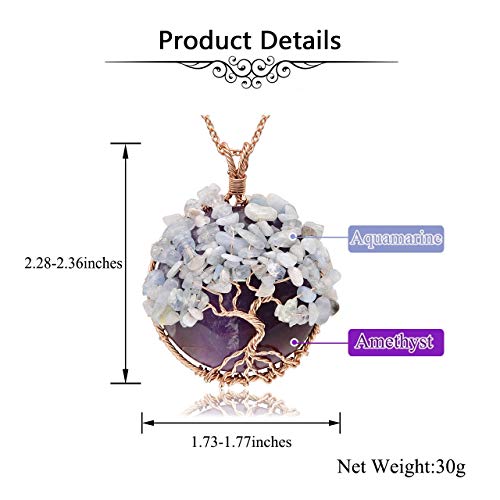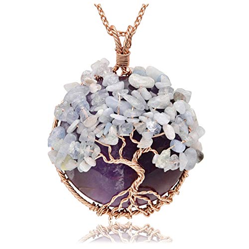Jovivi Collana Ciondolo Albero della Vita in Pietra Gemma Naturale Preziosa Rame Vintage da Donna Regalo Confezione-ametista