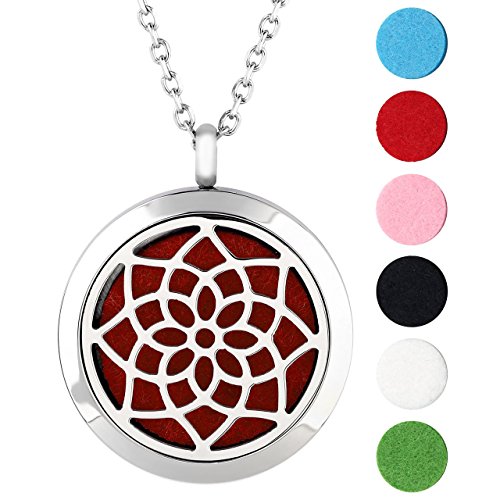 JOVIVI, collana con ciondolo rotondo a medaglione apribile con diffusore di oli essenziali per aromaterapia, 6 cuscinetti in feltro