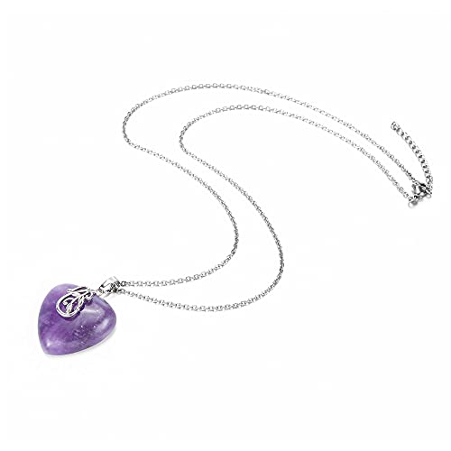 Jovivi Collana Cuore da Donna Ciondolo in Pietra Preziosa Quarzo Vintage con Pendente Fiore Regalo per Donna Mamma-ametista