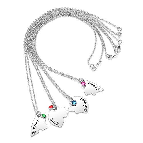 Jovivi - Set di 4 collane dell'amicizia, con ciondolo a forma di puzzle, in argento, con scritte che compongono frase "Best Friend Forever and Ever", cuore componibile