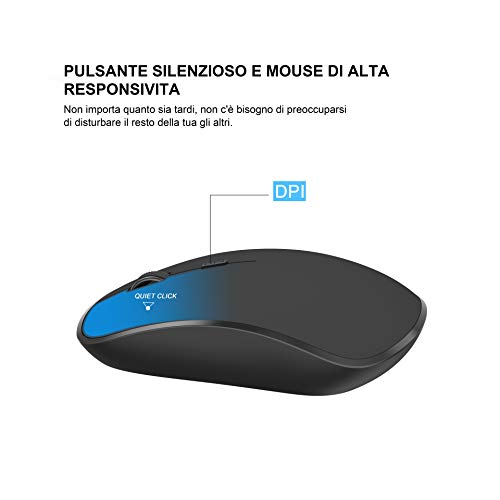 【MOUSE PIÙ SILENZIOSO E AD ALTA PRECISIONE DPI2400】 I tasti a basso profilo consentono meno rumori rispetto alla tastiera convenzionale, mentre i pulsanti del mouse sono silenziosi, permettendoti di concentrarti sul lavoro ed evitare di disturbare gli altri ambienti, ottimo per casa e ufficio! Scegli la sensibilità con 5 livelli di DPI regolabili mouse (1000-1200-1600-2000-2400) sulla tua attività.