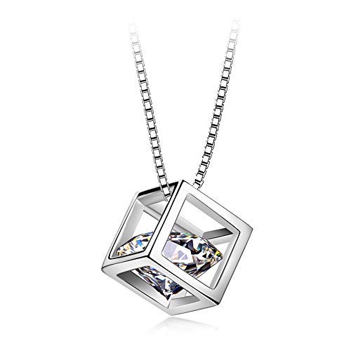 24 JOYAS Ciondolo a forma di cubo magico in argento Sterling 925 con zirconi di qualità AAA e catena in argento da 45 cm