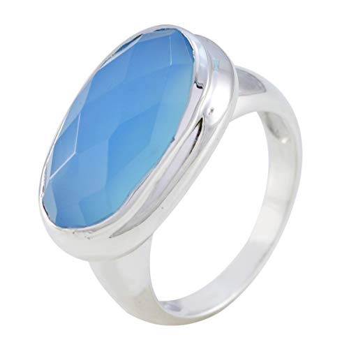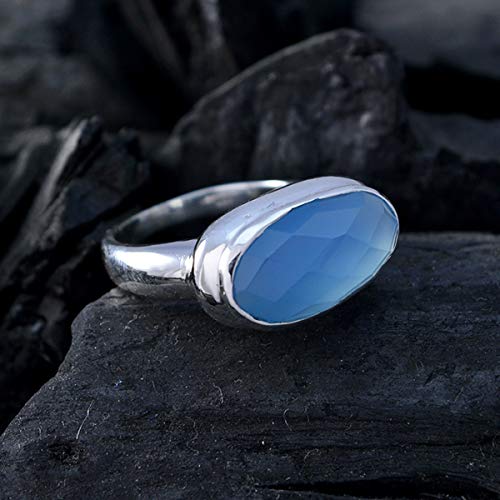Joyas Plata pietre preziose autentiche forma ovale in pietra calcarea blu calcedonio anelli - anello calcedonio blu argento 925 - dicembre nascita sagittario astrologia anello pietre preziose