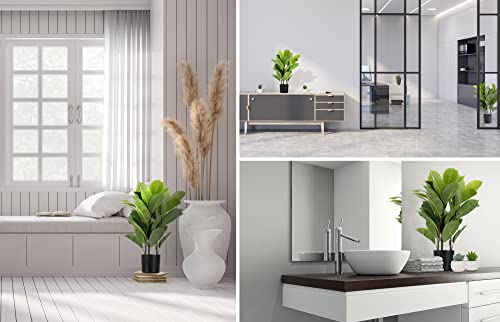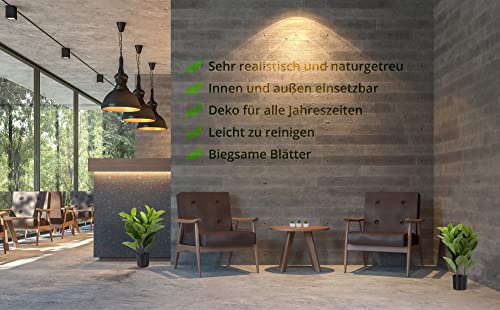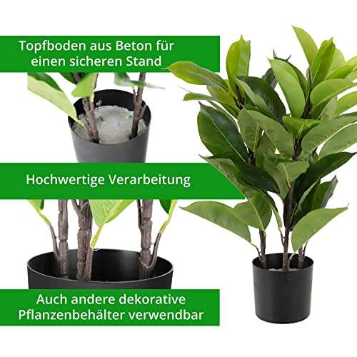 DESIGN NATURALE: imitazione naturale del ficus (albero della gomma), pianta artificiale con 3 steli dall'aspetto realistico con 13 foglie ciascuno, fogliame rigoglioso e flessibile in diverse tonalità di verde, viene fornito in un vaso di plastica nera