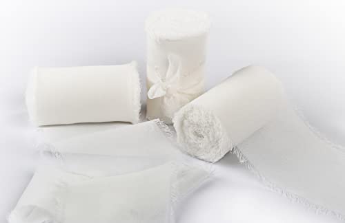 Joycrosso 3 rotoli di nastro in chiffon con frange fatte a mano, bordi sfilacciati, 60mmX4.5Meter per ogni rotolo, per inviti di nozze, bouquet da sposa, regali fai da te--Bianco