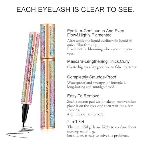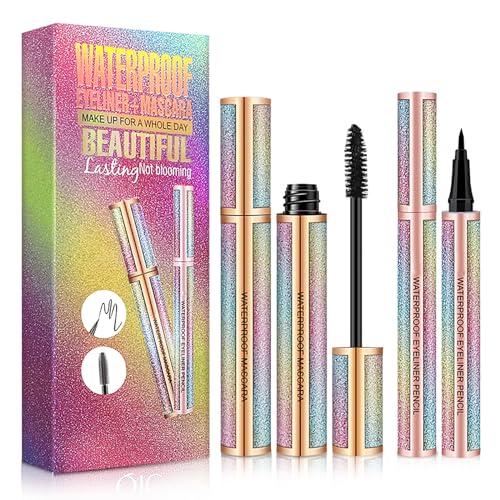 Joyeee 4D Fibra di Seta Mascara per Ciglia con Eyeliner Liquido, Mascara Waterproof Nero, Effetto Volumizzante, Eyeliner Waterproof Nero, Set di Naturale Trucco per Occhi
