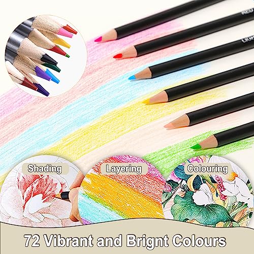 2. Qualità Premium -- I set di arte Joyeee sono realizzati con pigmenti resistenti alla luce e materiali legno originali 100%. Tutte le penne hanno un nucleo di penna di alta qualità, morbidi e resistenti alla rottura, la scrittura e la pittura sono fluide. I colori sono vividi e saturi, possono colorare facilmente l'immagine, e non si sbiadirà con il tempo, per garantire il successo di immagini e bozze perfette.