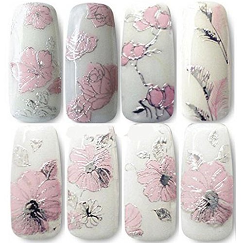Joyeee 3D Nail Decoration Punte di Arte del Chiodo Adesivi Falsi Chiodo Design Manicure Acqua Diapositiva Tatuaggio Adesivo Decalcomanie Set per Unghie Art Decorazione - Goffrato Fiori Rosa #8